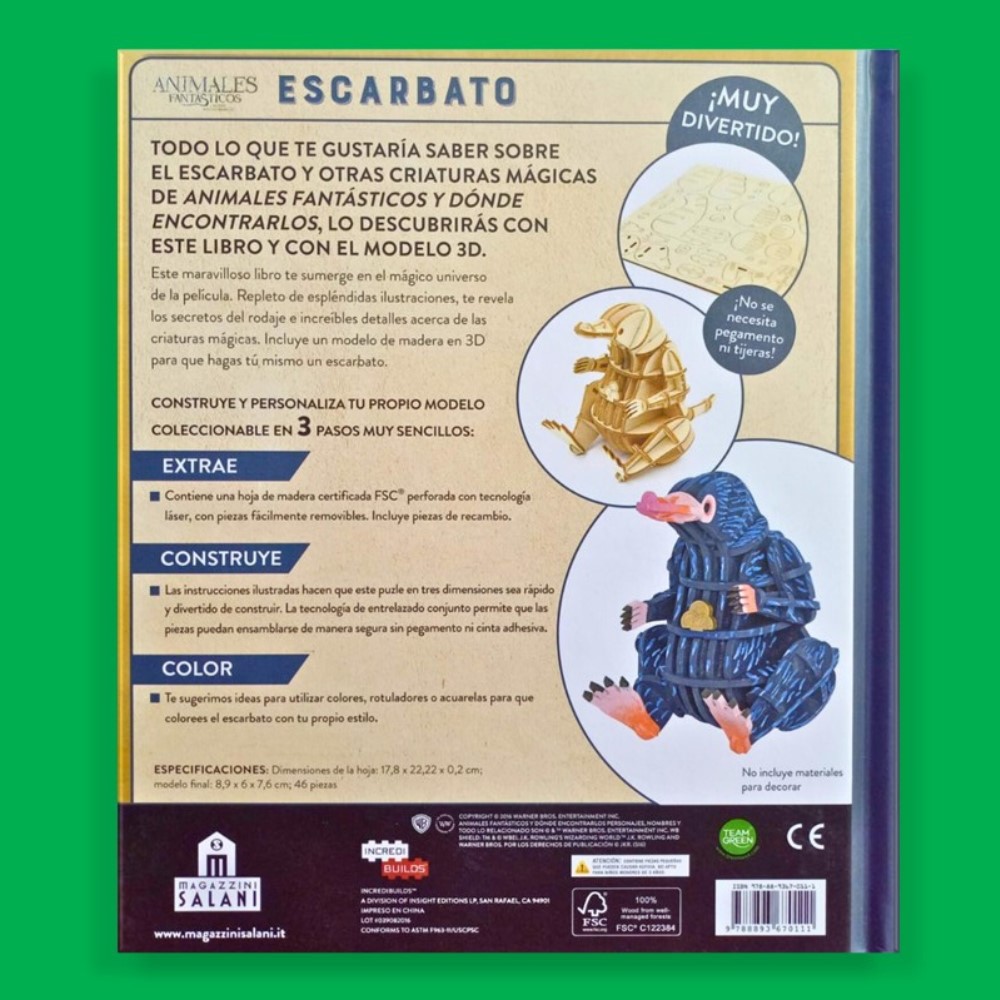 Este maravilloso libro te sumerge en el mágico universo de la película. Repleto de espléndidas ilustraciones, te revela los secretos del rodaje e increíbles detalles acerca de las criaturas mágicas. Incluye un modelo de madera en 3D para que hagas tú mismo un escarbato.
