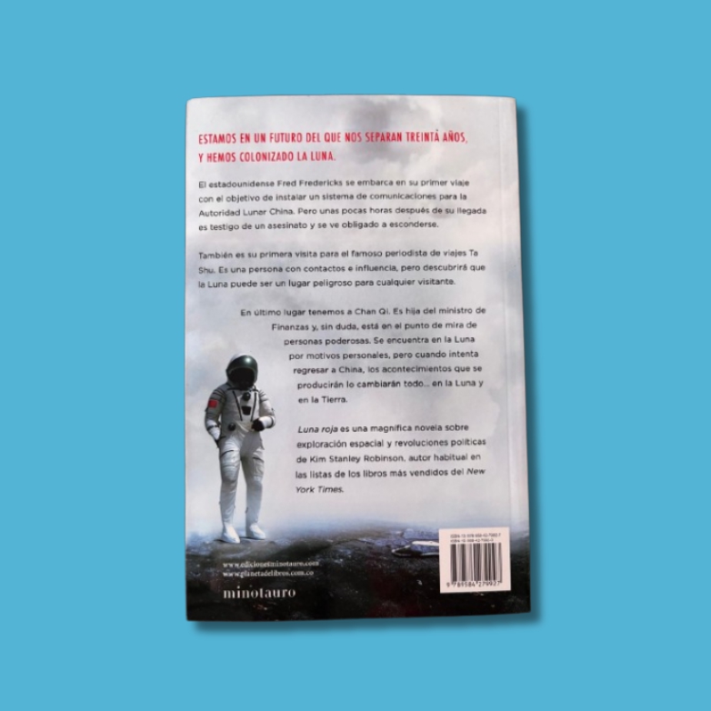 El estadounidense Fred Fredericks se embarca en su primer viaje con el objetivo de instalar un sistema de comunicaciones para la autoridad Lunar china. Pero unas pocas horas después de su llegada es testigo de un asesinato y se ve obligado a esconderse. También es su primera visita para el famoso periodista de viajes Ta Shu. Es una persona con contactos e influencia, pero descubrirá que la luna puede ser un lugar peligroso para cualquier visitante. En último lugar tenemos a Chan Qi. Es hija del ministro de finanzas y, sin duda, esta en el punto de mira de personas poderosas. Se encuentra en la luna por motivos personales, pero cuando intenta regresar a China, los acontecimientos que se producirán lo cambiarán todo… en la luna y en la tierra. Luna roja es una magnífica novela sobre exploración espacial y revoluciones políticas de Kim Stanley Robinson, autor habitual en las listas de los libros más vendidos del New York Times.